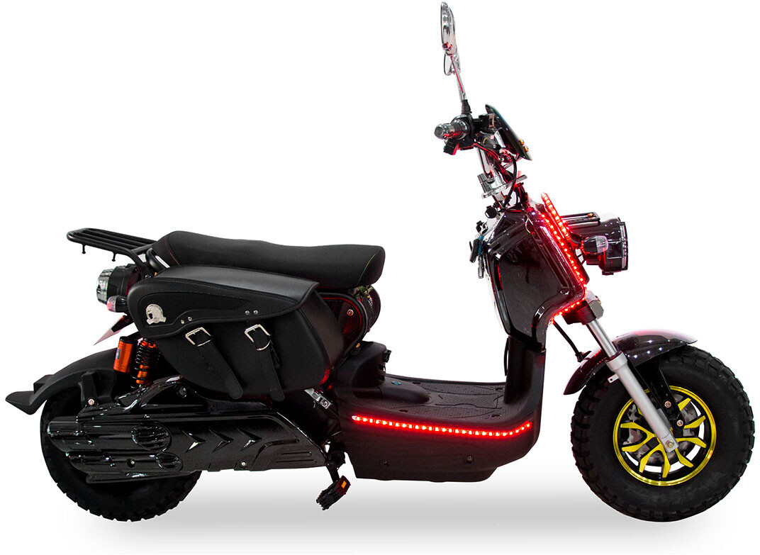 The scooter is equipped with RGB LED lighting that can be configured in any color. The lighting can be controlled via a Android and iOS app.