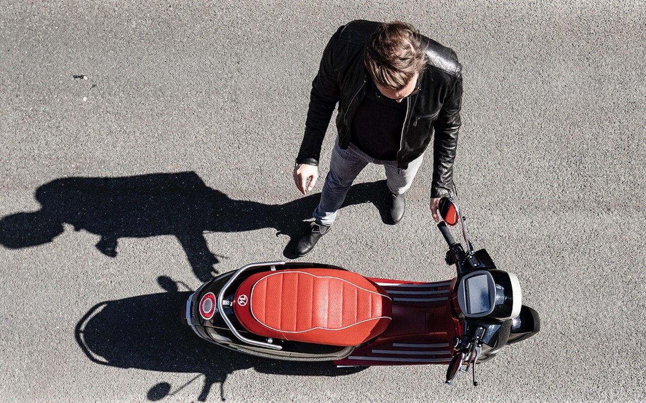 The scooter is easy to handle for use in cities. The scooter has a lockable storage compartment under the seat and has a glove box and a lockable phone box with USB charge port. The foot deck of the scooter contains a lockable compartment with coin and cup holder.
