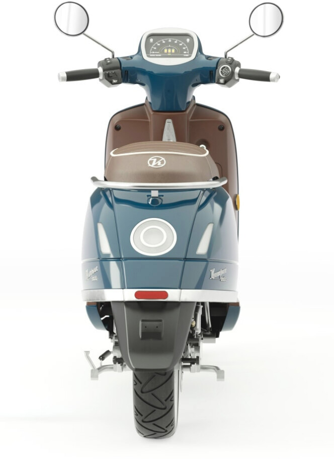 The scooter is easy to handle for use in cities. The scooter has a lockable storage compartment under the seat and has a glove box and a lockable phone box with USB charge port. The foot deck of the scooter contains a lockable compartment with coin and cup holder.