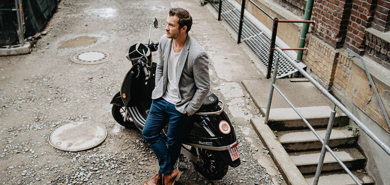 The scooter is easy to handle for use in cities. The scooter has a lockable storage compartment under the seat and has a glove box and a lockable phone box with USB charge ports. The foot deck of the scooter contains a lockable compartment with a coin and cup holder.