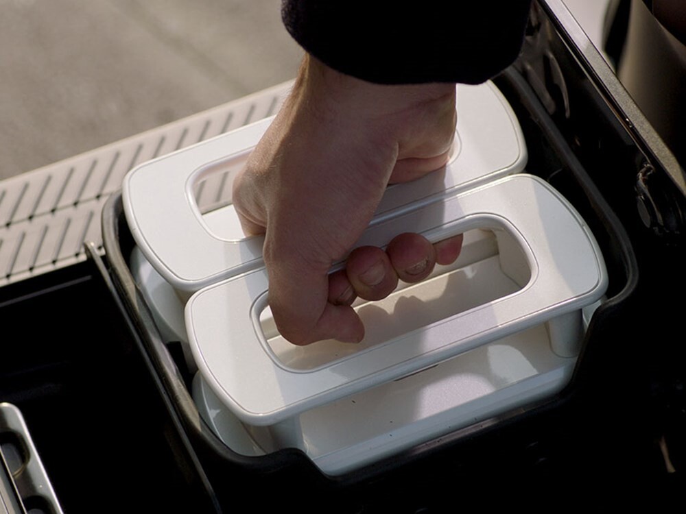 The scooter provides space for 5 batteries that weigh 5kg each. The batteries have easy handles that make it easy to carry multiple batteries.