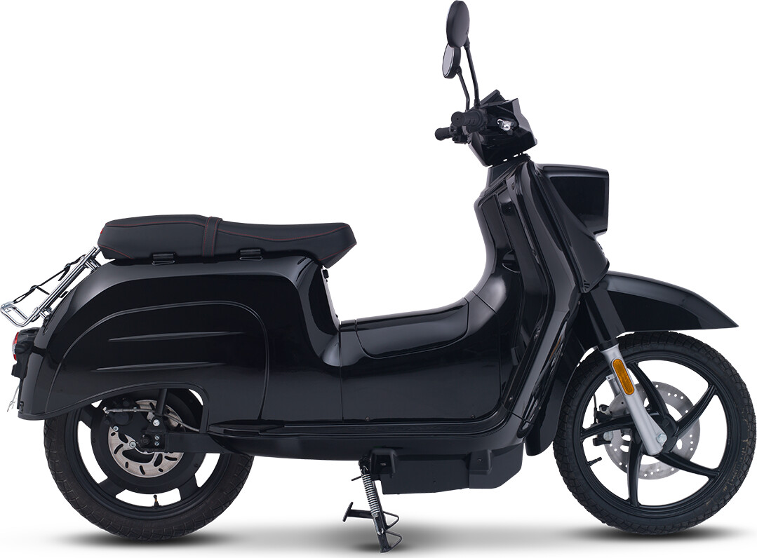 The scooter is available with two motor options: 4 kW (moped) and 8 kW (motorcycle).