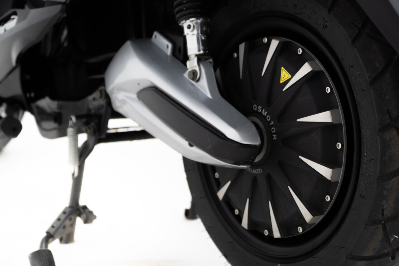 The scooter has two swappable lithium batteries for a driving range of ۱۵۰ کلومیٹر.