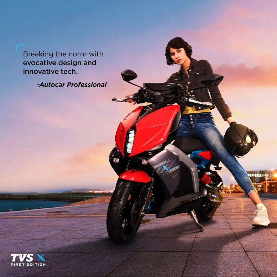 The TVS X is an innovative electric motorcycle scooter from TVS Motor Company in India, one of the biggest motorcycle manufacturers in India. The company introduced its first electric scooter in 2008.