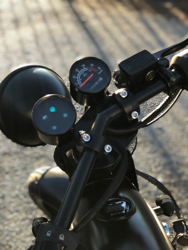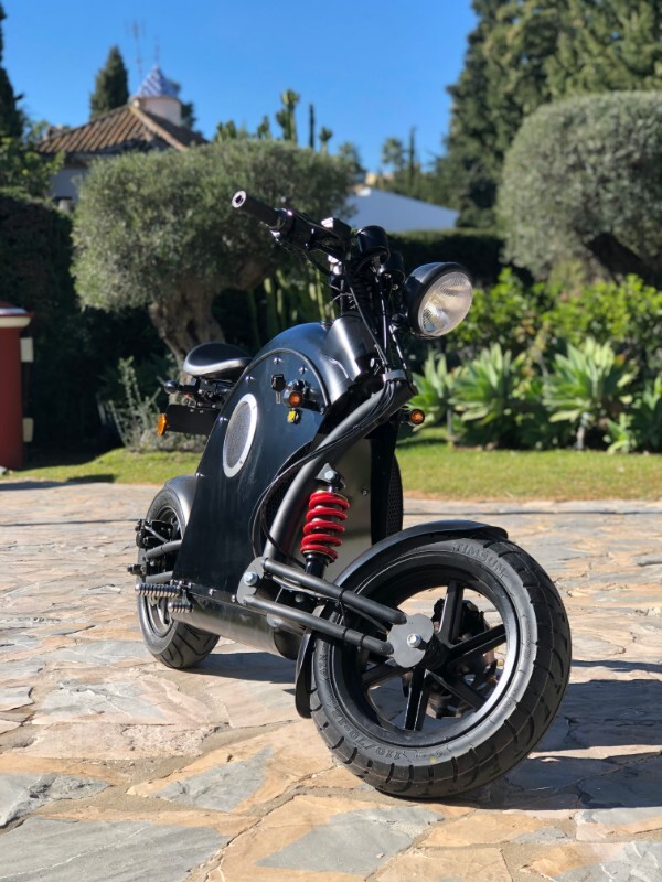 The moped has an integrated speaker that can produce a authentic motorcycle sound to improve safety for pedestrians.