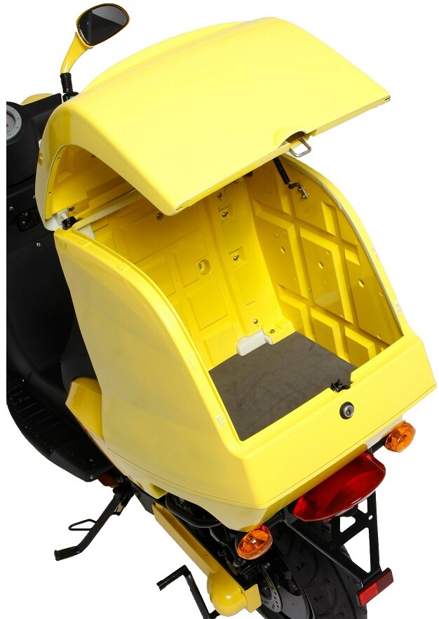 The scooter can be provided with many top case / cargo rack options. The scooter can be customized for specialized business purposes such as ambulance or security appliances.