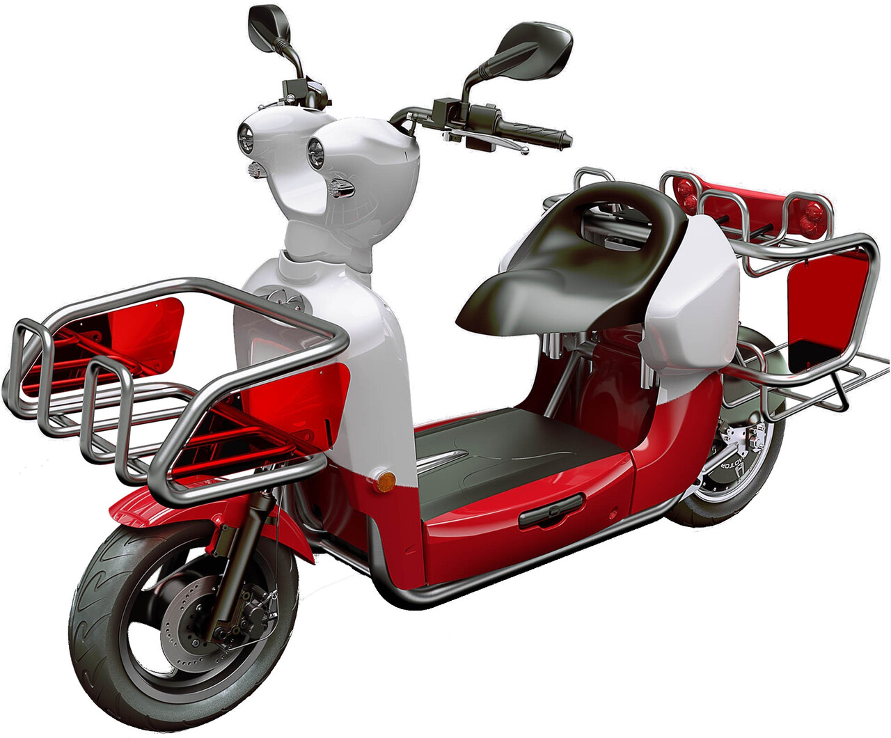 The scooter can be equipped with a diverse range of racks, rails and top cases to meet diverse transport needs. The scooter has the capacity to carry heavy cargo.